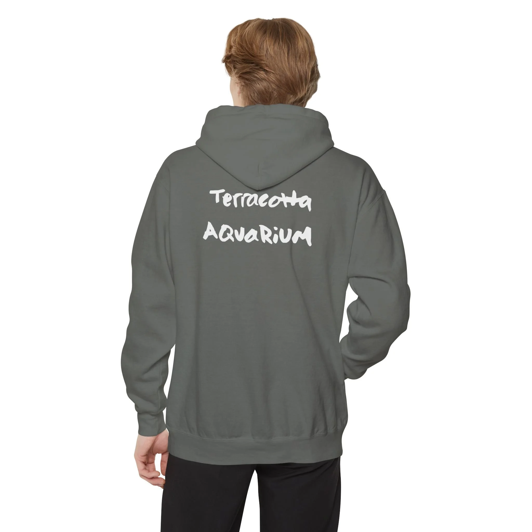 The Original Honey Gourami Guy Hoodie. Sketched out by Lucas and polished up by his lovely wife Bridget. This hoodie is made to order so may take just a little longer to ship. The heavy, ringspun-cotton blend feels substantial and warm, while the soft, muted dye gives the hoodie a lived-in look that grows more personal with each wash. The roomy hood, lined jersey, and tapered rib cuffs keep the silhouette cozy without feeling bulky.